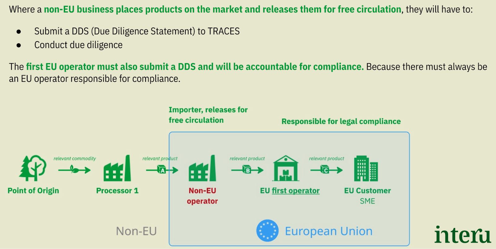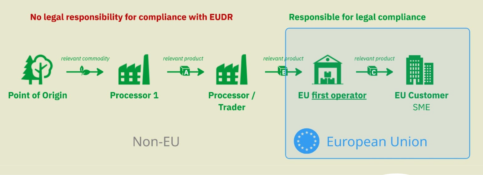 The headline of EUDR is that there must always be an EU operator who is responsible for compliance with EUDR.