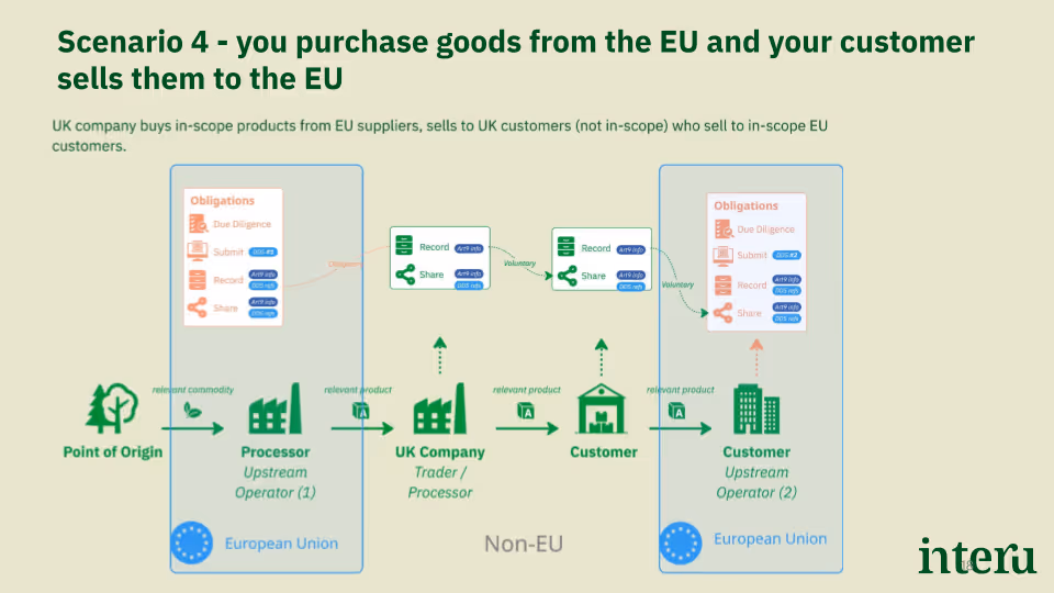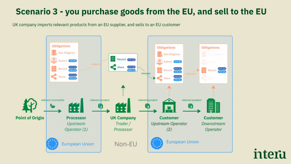 UK businesses are not directly bound by the EUDR, and the EU has no authority to impose fines on them. They also cannot submit information directly to TRACES, and there is no legal obligation for UK companies to pass on EUDR data to EU customers.