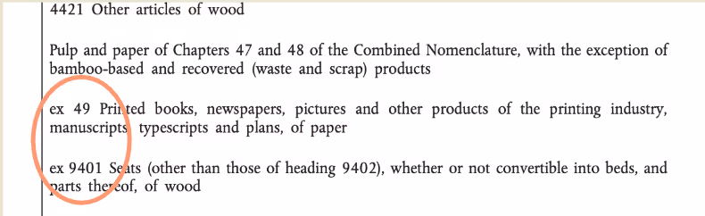 - Check if the first four digits are included in Annex 1.