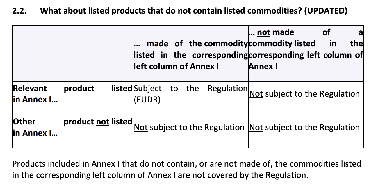 - If I am an importer of plastic furniture that is not listed in Annex 1, but its legs are made of wood, am I therefore subject to the EUDR?